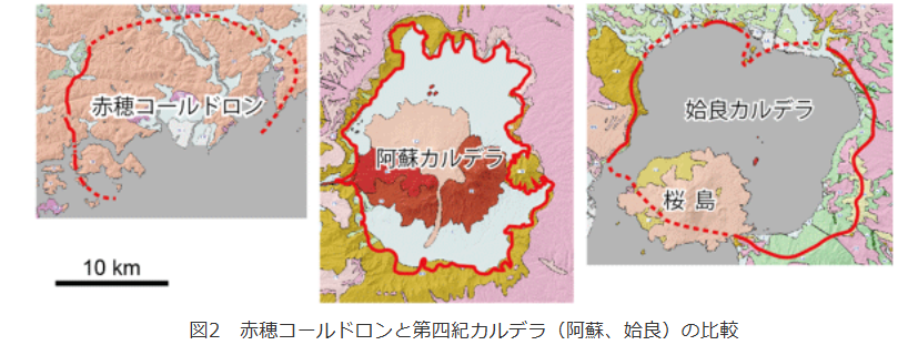 赤穂カルデラは、それらより かなり古いので カルデラ地形が残っていない。