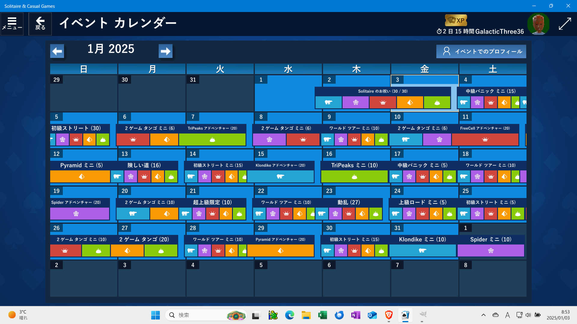 MSのwindowsのゲームソリティアの、「今日のイベント」の時カレンダーおかしい。